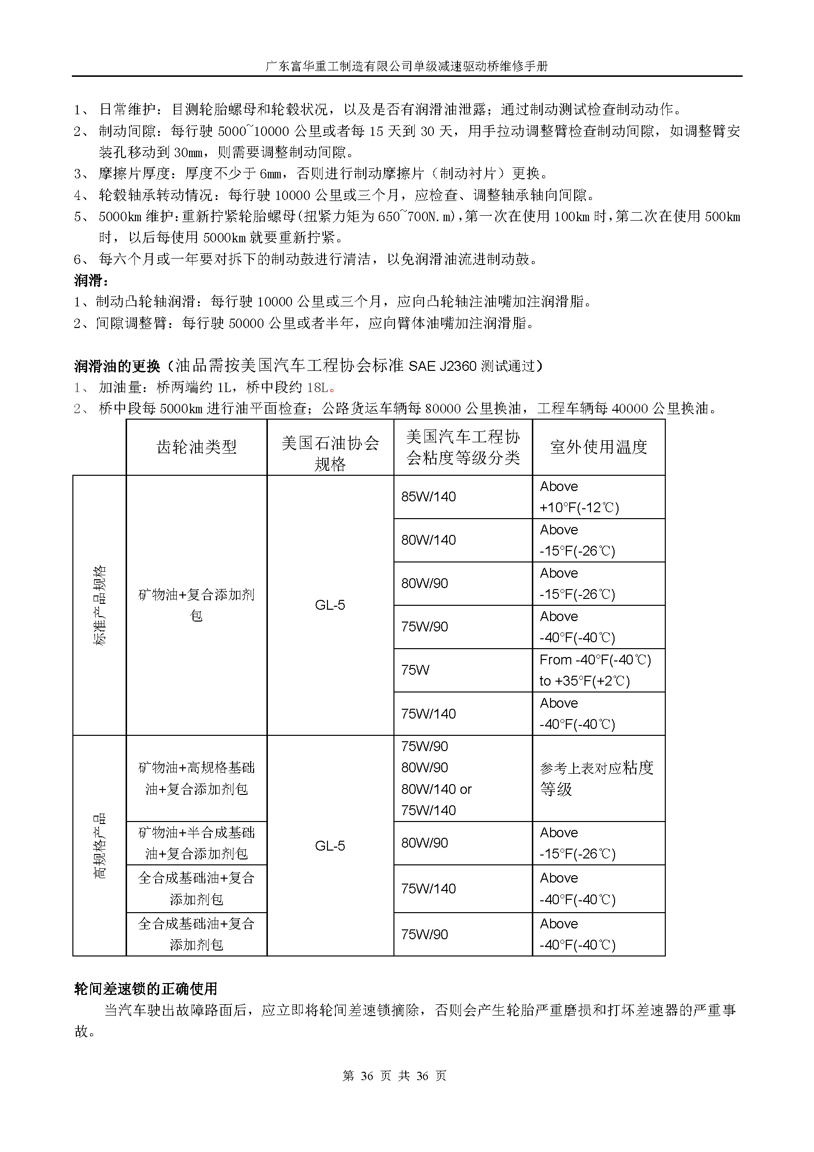 510单级减速后桥维修手册