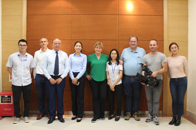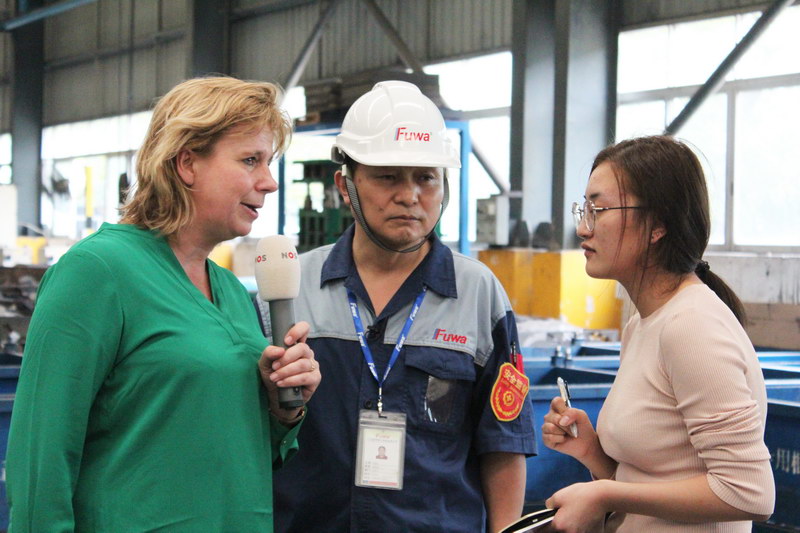 NOS驻东亚记者费玛丽女士一行三人,先后到访了位于佛山顺德的华体会在线官网集装箱制造基地以及台山的华体会在线官网重工制造基地。